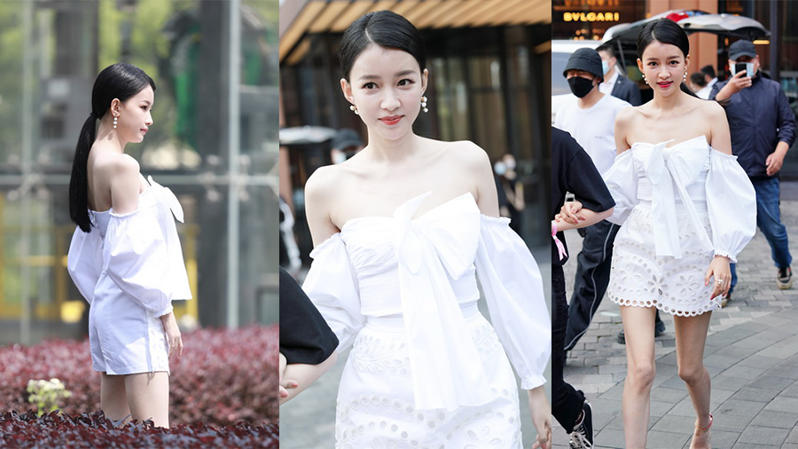 2020年5月7日,上海,孫怡出席品牌活動,復(fù)工營業(yè)大秀好身材,露肩上衣配熱褲美腿撩人。