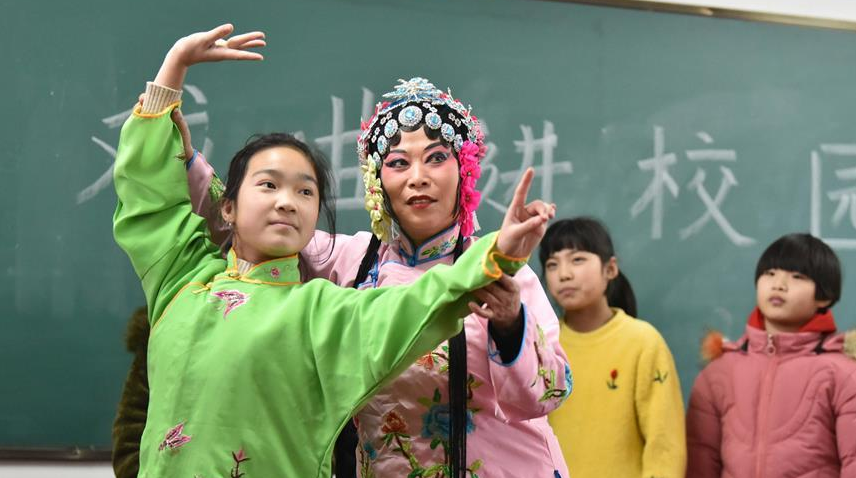 近年來,河北省定州市明月店鎮(zhèn)吳咬村小學(xué)積極開展“傳統(tǒng)戲曲進校園”特色社團活動,以戲曲展演、戲曲交流互動等形式,讓學(xué)生感受戲曲的魅力。