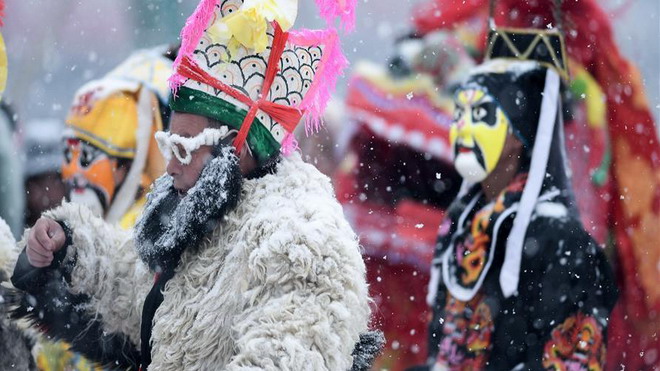 當日是農歷正月十二,青海省西寧市大通回族土族自治縣春節(jié)期間社火展演活動正式開啟。