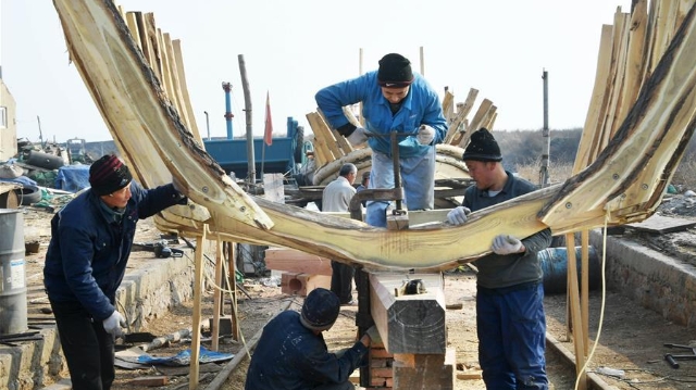 青島紅雙木造船廠是膠東地區(qū)保存下來的為數(shù)不多的傳統(tǒng)手工造船廠。廠里6位師傅都是制造木船的行家里手,年紀(jì)最小的也已50多歲。