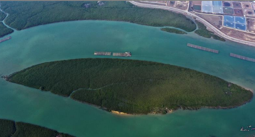 12月21日無人機拍攝的廣西合浦縣黨江鎮(zhèn)更螺圍出??谝痪?。新華社記者 張愛林 攝 12月21日無人機拍攝的廣西合浦縣黨江鎮(zhèn)更螺圍出??诘奈r塘。