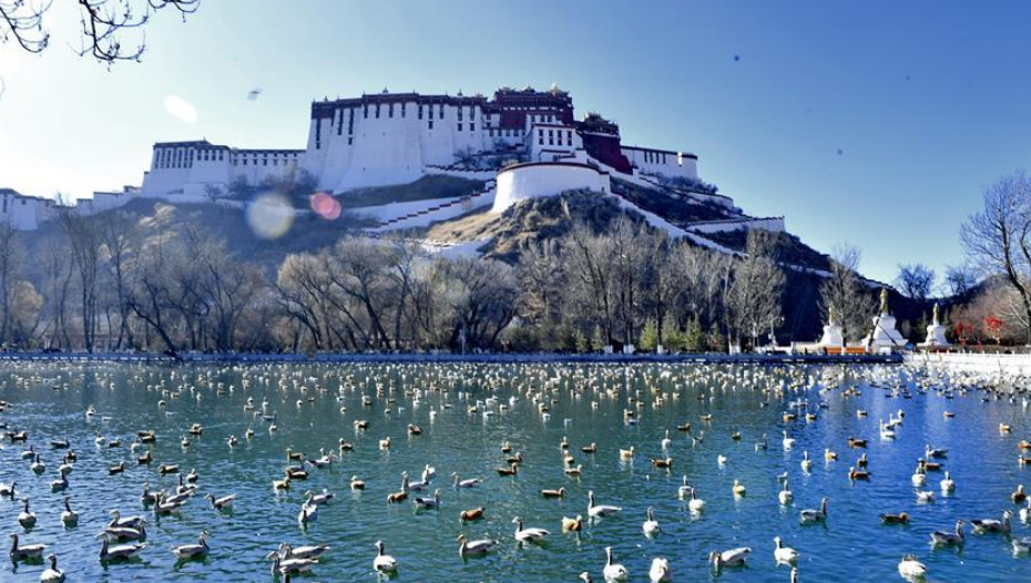 冬日,西藏拉薩市布達拉宮腳下的龍王潭公園成了鳥的“天堂”。數(shù)不盡的斑頭雁、赤麻鴨、紅嘴鷗在這里嬉戲、覓食。
