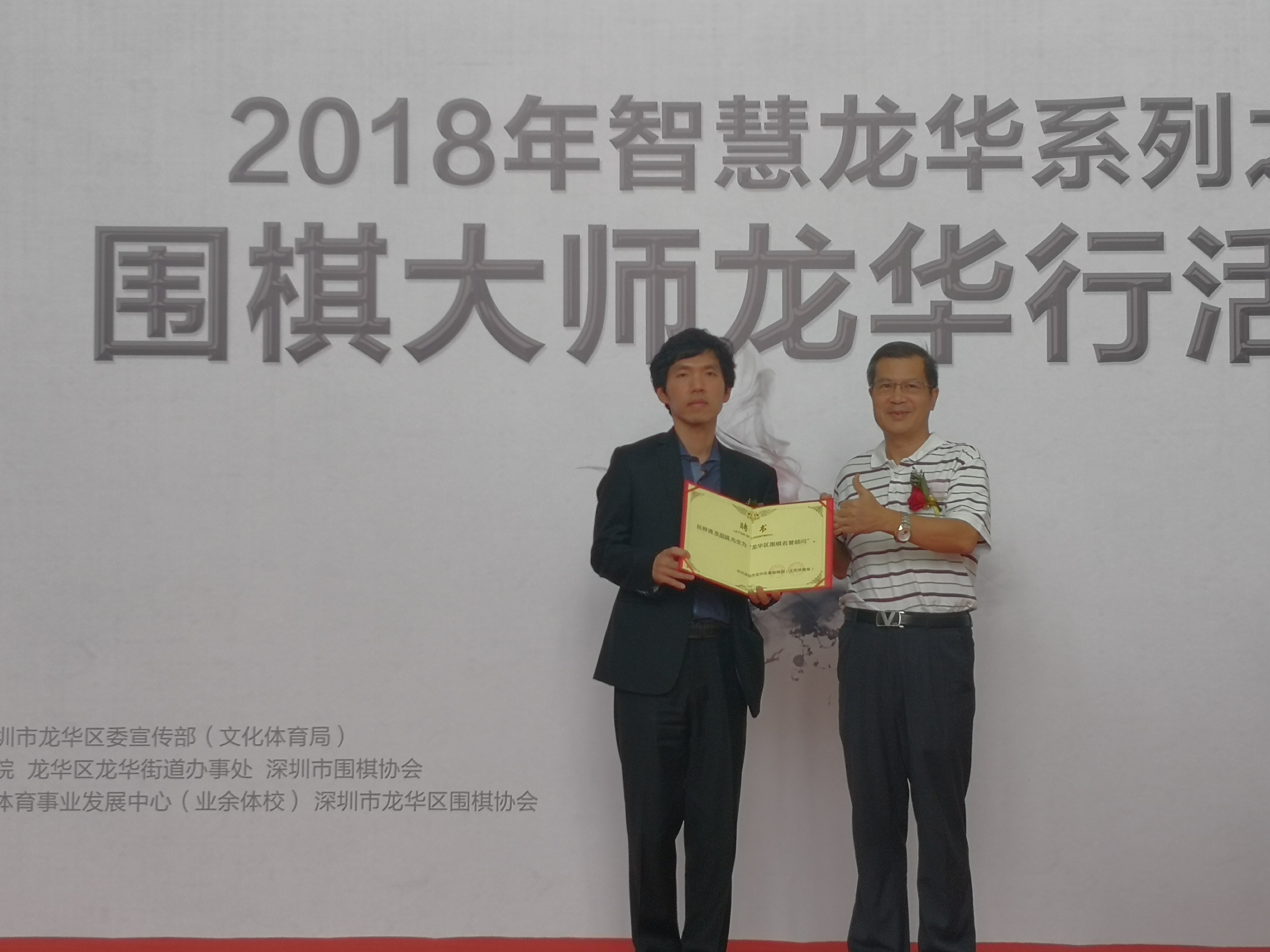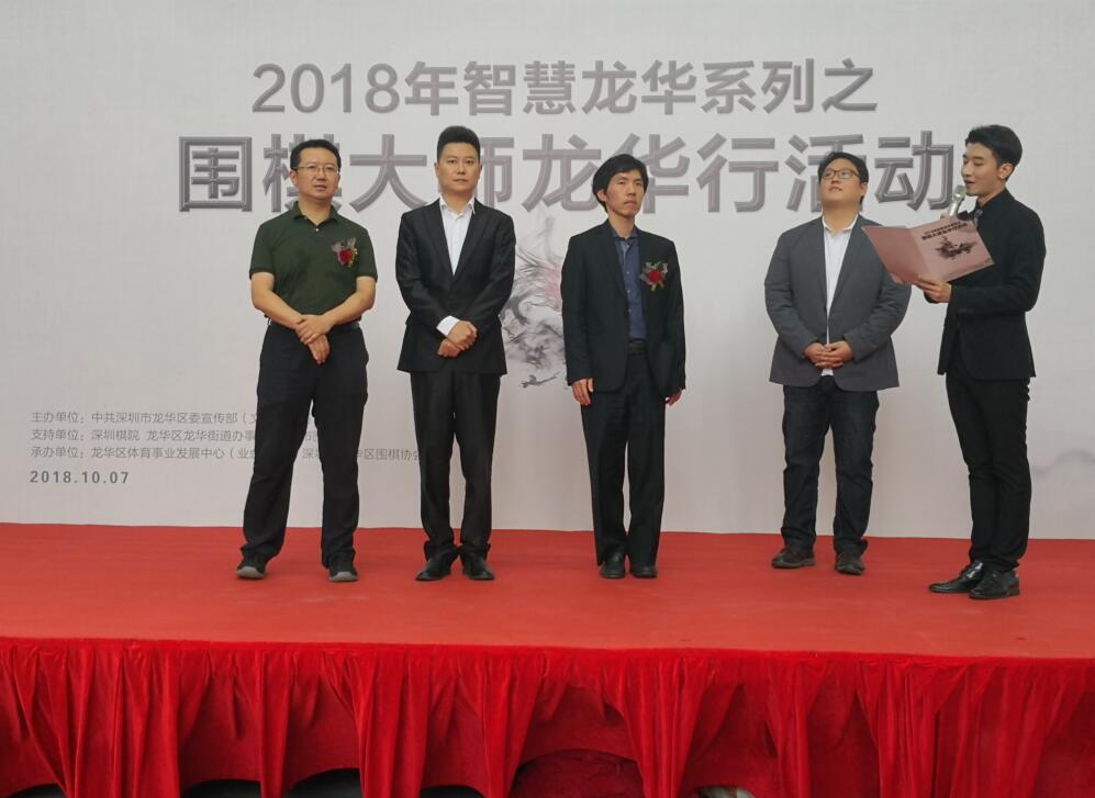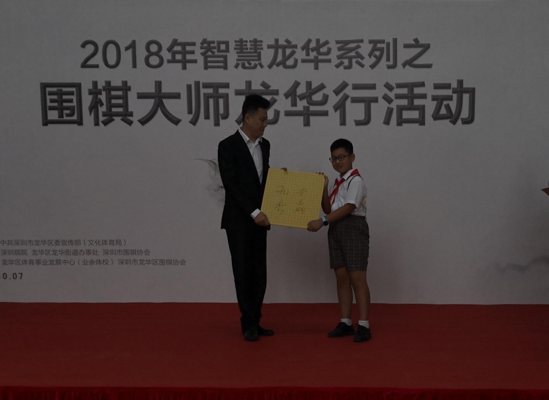 開幕式上,龍華區(qū)委副書記苗寧禮,龍華區(qū)委常委、宣傳部長黃啟鍵及區(qū)文化體育局相關(guān)負責人等在百忙中前來為“智慧龍華”捧場加油?;顒釉谳p松熱鬧的歌舞中拉開帷幕,文化體育局負責人在致辭中對諸位圍棋大師的到來表示熱烈的歡迎,對活動擴大中華圍棋文化的傳播,推動龍華區(qū)圍棋的發(fā)展給予了充分的肯定。隨后,黃啟健常委代表龍華區(qū)聘請李昌鎬大師擔任龍華區(qū)圍棋發(fā)展的名譽顧問并頒發(fā)了證書,李昌鎬則回贈了簽名棋盤。緊接著,孔杰老師也給參加活動的小棋手贈予了簽名棋盤。在廣東圍棋總冠軍佟云老師簡要介紹李昌鎬、孔杰的精采圍棋經(jīng)歷之后,活動主持人還現(xiàn)場采訪了李昌鎬、孔杰,就兩人圍棋從業(yè)過程中的難記經(jīng)歷、精采賽事以及對人工智能圍的展望等進行了提問,兩位大師的回答坦率、誠懇,贏得了現(xiàn)場觀眾的陣陣掌聲?;顒拥母叱笔抢畈€、孔杰、車澤武、張亞博四位老師與龍華區(qū)的圍棋愛好者進行多面打的活動,梁偉棠九段和徐瑩老師還進行掛盤講解。