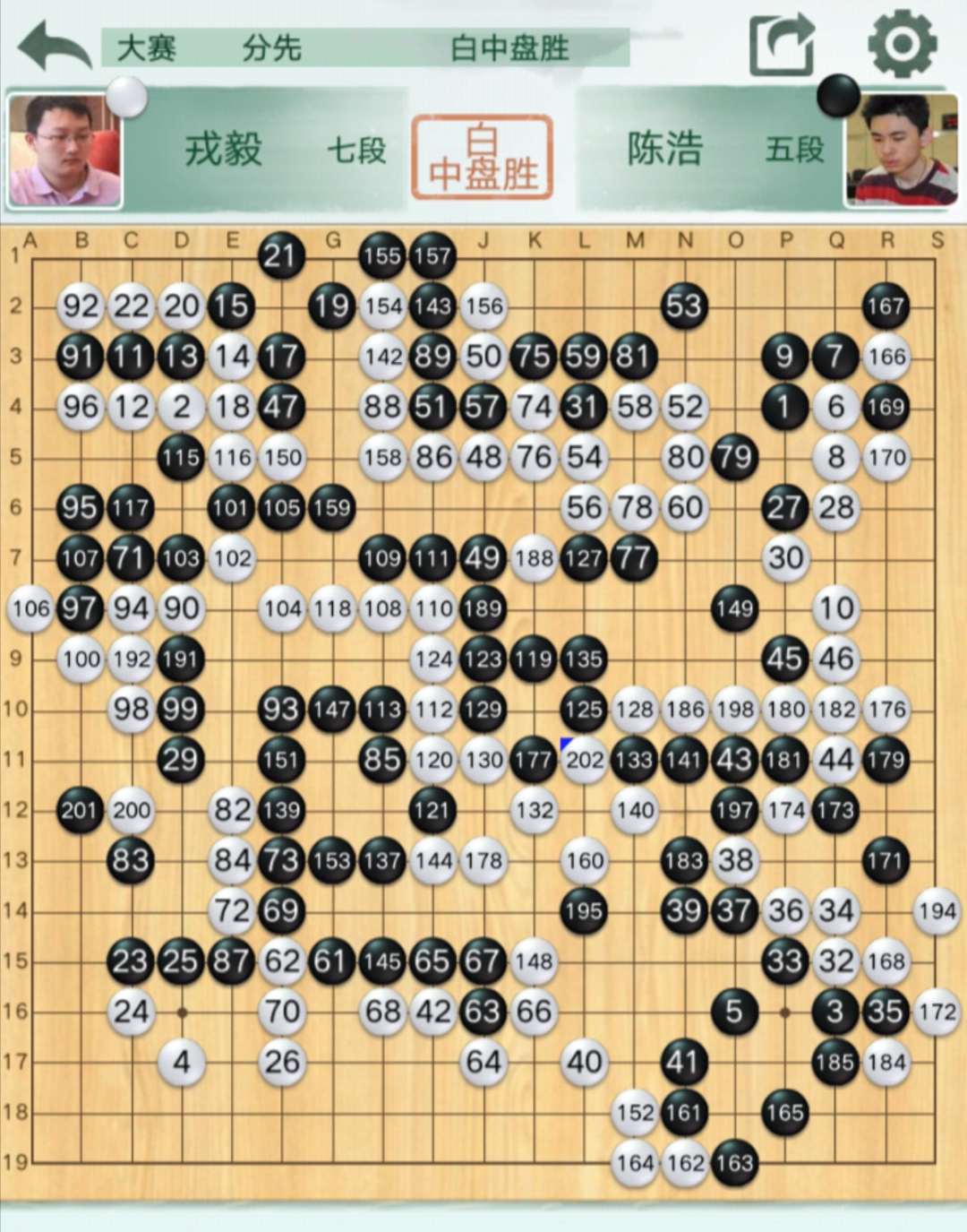 戎毅率先贏了陳浩五段(對(duì)陣棋譜)