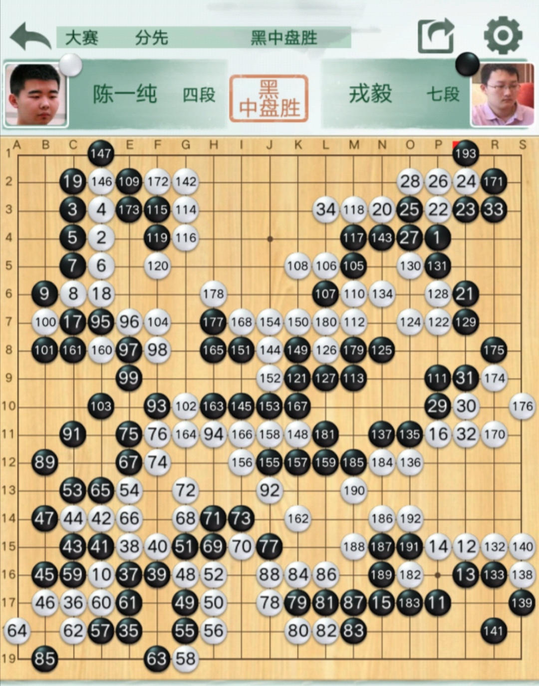 陶欣然自評:布局階段至44的轉換差不多。黑63動出至79收獲不大,白方確立優(yōu)勢。白116吃住左下角后領先不少了。