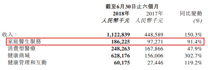 智通財(cái)經(jīng)APP觀察到,截止2018年6月底,該公司的家庭醫(yī)生業(yè)務(wù)的收入達(dá)到人民幣1.86億元,同比增長(zhǎng)91.4%;毛利達(dá)到814萬(wàn)元,同比增長(zhǎng)46.5%。增數(shù)如此明顯,主要是原自其新產(chǎn)品就醫(yī)360,以及電子處方服務(wù)收入的帶動(dòng)。