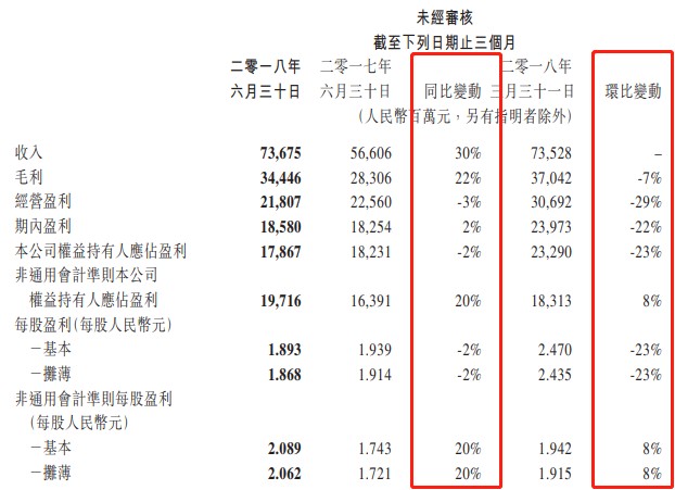 2018年8月15日,騰訊(00700)公布了第二季度及中期業(yè)績,上半年收入1472.03億元,同比增長39%,凈利潤411.57億元,同比增長26%。第二季度,收入736.75億元,同比增長30%,凈利潤178.67億元,同比下滑2%,環(huán)比來看,第二季度的各項業(yè)績指標明顯弱于第一季度。