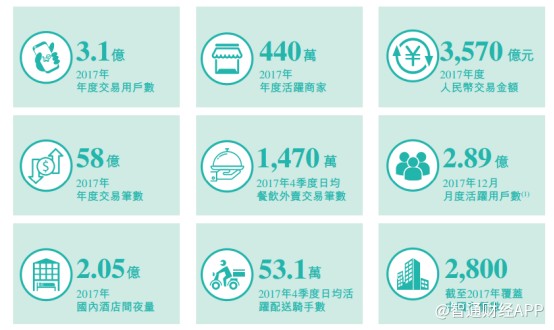 智通財經(jīng)APP觀察到,2017年美團(tuán)交易額達(dá)到3570億元,同時公司還擁有3.1億年交易用戶以及440萬活躍商家。此外,2017年公司MAU數(shù)據(jù)已達(dá)2.89億。