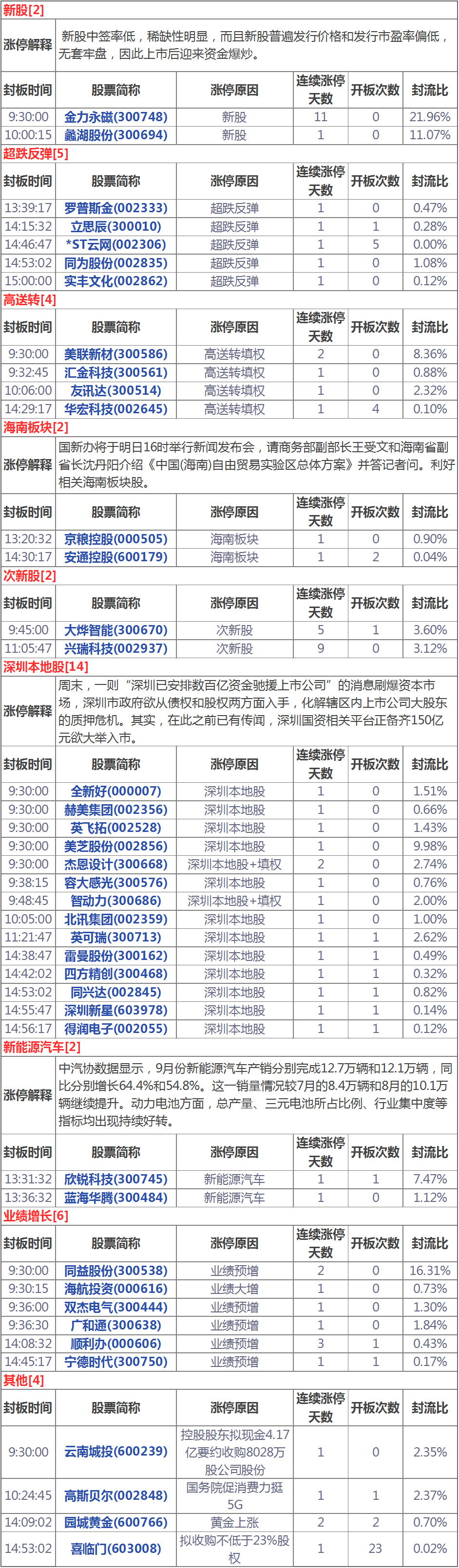漲停分析:深圳本地股多股漲停高送轉(zhuǎn)板塊持續(xù)強(qiáng)勢(10月15日)