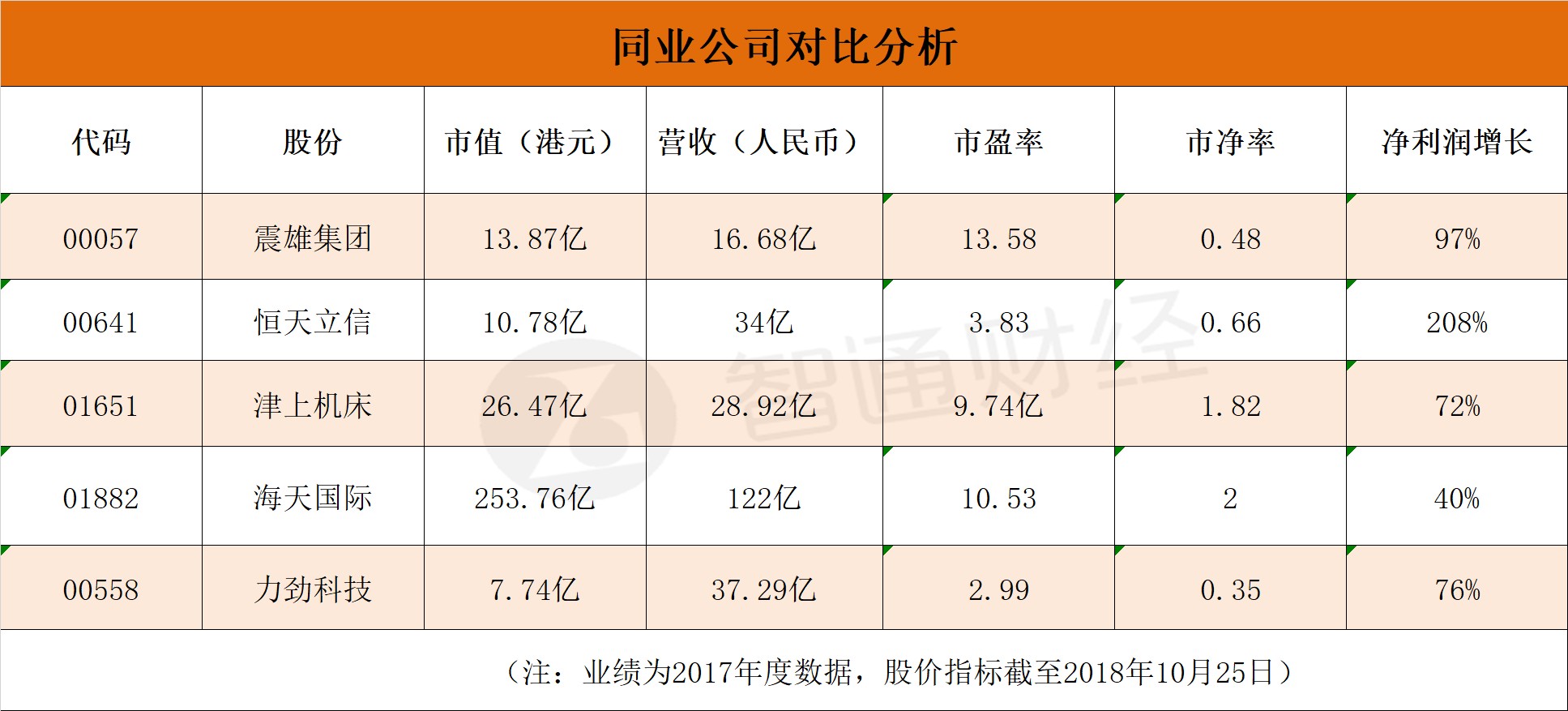 根據(jù)同業(yè)公司對比分析,力勁科技雖然不是注塑機行業(yè)龍頭,但是壓鑄機業(yè)務(wù)依然是行業(yè)龍頭,且估值為同業(yè)公司最低水平。