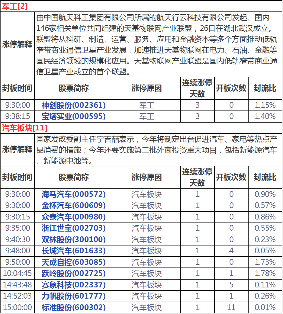 今天漲停家數較上一交易日增加,兩市64家漲停,跌停2家。成交量方面,滬市成交1608億元,深市成交2184億元,兩市總成交額約為3792元,較上一交易日放量794億元。盤面上,家電、汽車、無人駕駛等板塊漲幅居前,軍工、養(yǎng)殖業(yè)、天然氣等板塊跌幅居前。