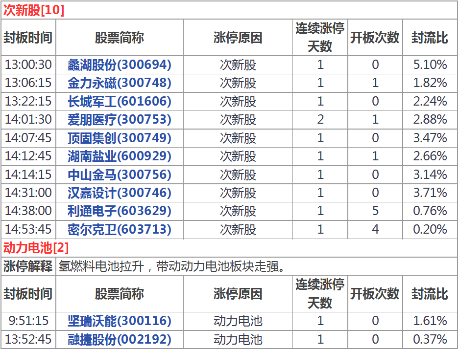 今天漲停家數(shù)較上一交易日有所增加,兩市70家漲停;跌停8家。成交量方面,滬市成交1224億元,深市成交1738億元,兩市總成交額約為2962元,較上一交易日縮量172億元。盤面上,次新股、氫燃料電池、超導等板塊漲幅居前,港口航運、彩票、智能音箱等板塊跌幅居前。