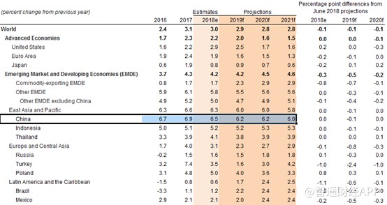 仍然從當前的形勢說起,據世界銀行統(tǒng)計,2018年中國GDP增速為6.5%,比2017年低0.4個百分點。這個增速高嗎?相對于十年前動輒雙位數,低不過8%的增速來說,不高;但是拿到今天,橫向比較一下,這個增速仍然是高速甚至吊打大部分尤其是發(fā)達國家。