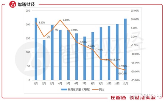 再具體一點,根據智通財經APP的統(tǒng)計,2018年乘用車全年累計銷量2235萬輛,同比下降5.8%,其中在12月份,銷量同比下滑達19.2%,連續(xù)8個月增長持續(xù)下滑,且連續(xù)6個月出現負增長。這說明汽車的“消化”能力已經到了一個瓶頸。
