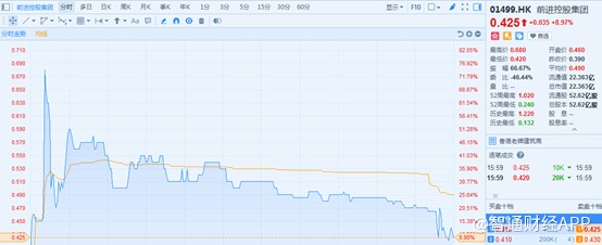智通財經(jīng)APP獲悉,1月10日停牌的前進控股集團(01499)于24日復(fù)牌,股市反響劇烈,開盤十分鐘曾一度暴漲74.56%,不過隨后不斷滑落,截止16時45分,報港元0.425元(下同),較停牌日收盤價0.39元僅有9%的增幅。