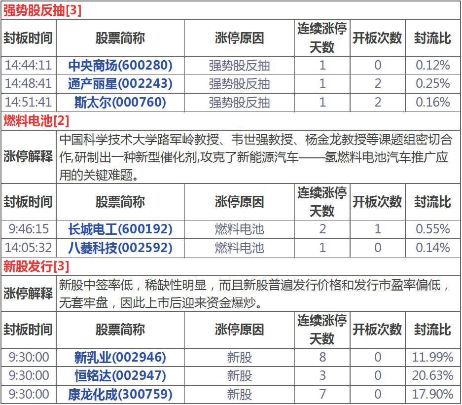 今天漲停家數(shù)較上一交易日有所減少,兩市75家漲停,跌停1家。成交量方面,滬市成交1567億元,深市成交2085億元,兩市總成交額約為3652元,較上一交易日放量453億元。盤面上板塊普漲,OLED、醫(yī)藥、天津自貿(mào)區(qū)、氟化工等板塊漲幅居前。