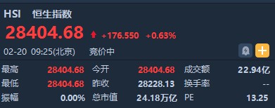 智通財(cái)經(jīng)APP獲悉,恒生指數(shù)開盤漲0.63%,報28404.68點(diǎn)。國企指數(shù)漲0.78%,報11203.52點(diǎn)。紅籌指數(shù)漲0.55%,報4503.48點(diǎn)。大市盤前成交22.94億港元。隔夜美股方面,納指、標(biāo)指微漲,道指近乎平收,港股ADR指數(shù)全日走好。