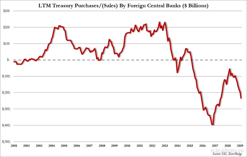 根據(jù)TIC數(shù)據(jù)顯示,外國(guó)投資者連續(xù)第10個(gè)月和過(guò)去13個(gè)月中的12個(gè)月賣出美國(guó)股票,創(chuàng)歷史新高: