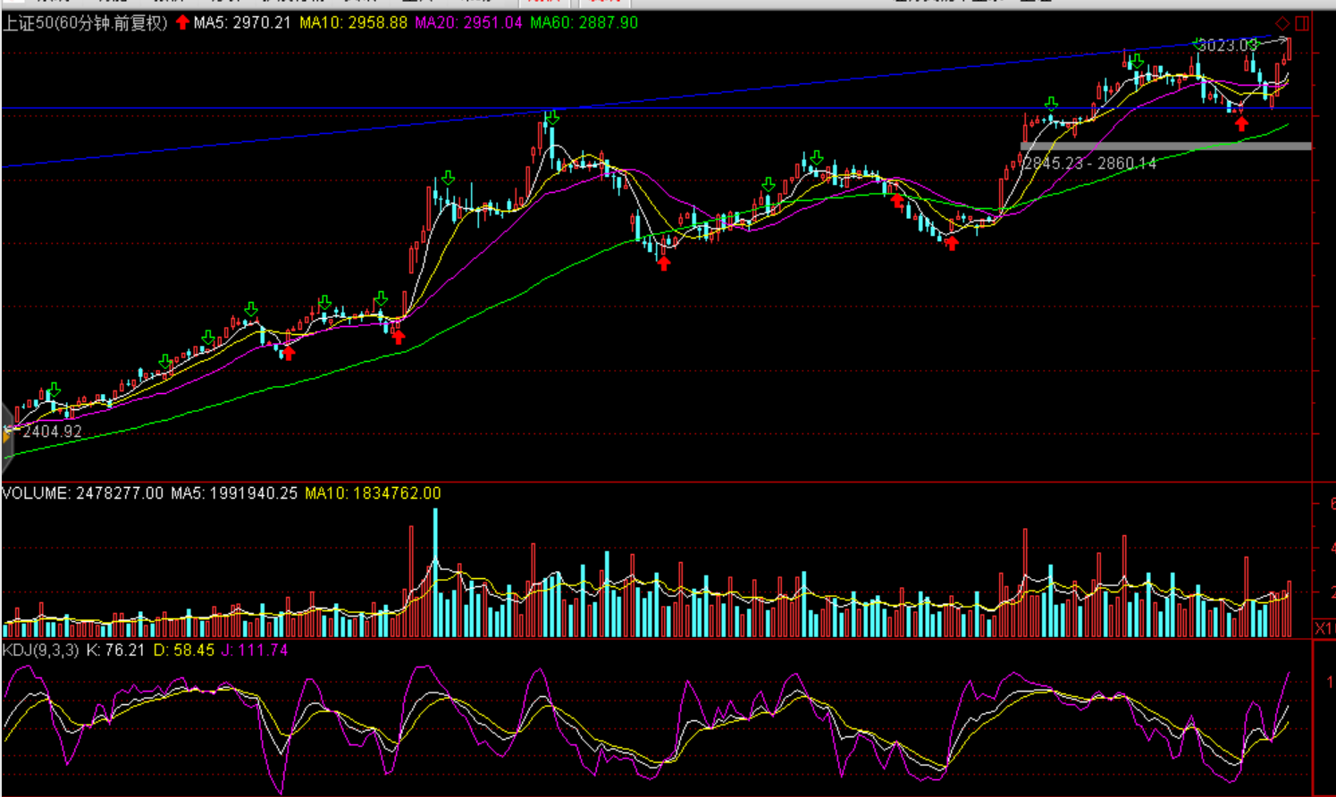 技術(shù)面:短期股強勁反彈修復(fù)調(diào)整結(jié)構(gòu),維持高位震蕩,60分鐘看上證50面臨壓力,預(yù)計今日股指沖高受阻,小陰或小陽報收。