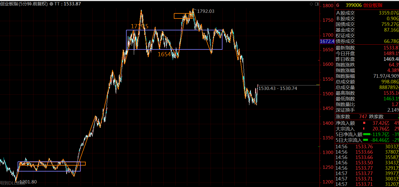 創(chuàng)業(yè)板這里走勢(shì)結(jié)構(gòu)粗暴直接的多,目前已遠(yuǎn)離上方的三十分鐘中樞,壓力位在上方中樞下沿1616點(diǎn)附近,空間較大。相對(duì)來說,短期小票走勢(shì)可能會(huì)強(qiáng)一些。