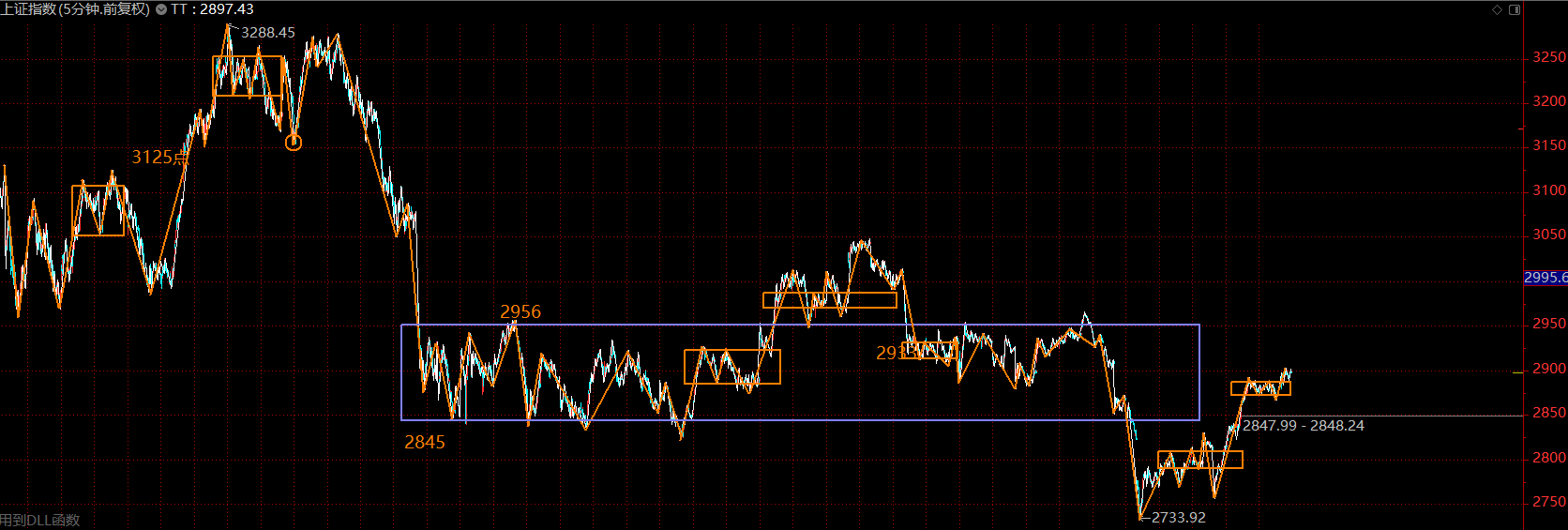 結(jié)合周五盤后的消息,這里五分鐘的上漲趨勢應(yīng)該已經(jīng)結(jié)束,市場強(qiáng)于預(yù)期,并沒有在中樞下方結(jié)束這段上漲趨勢,而且在中樞的中部,回落后,如果不創(chuàng)新低,則構(gòu)成大級別的二買,中期大行情可期。短期這里可能會面臨一波回落,周一早盤如果開在2845上方,則可持股不動,如果低于2845點(diǎn),則可在上拉時(shí)適度減倉,后續(xù)在2733與2800之間擇機(jī)回補(bǔ)。