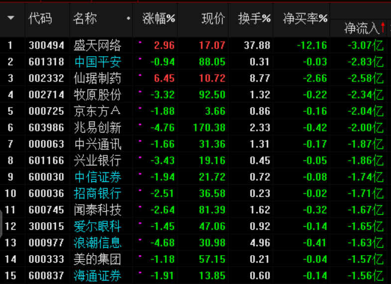 周三資金凈流出靠前公司:大金融、高位科技股及家電龍頭;