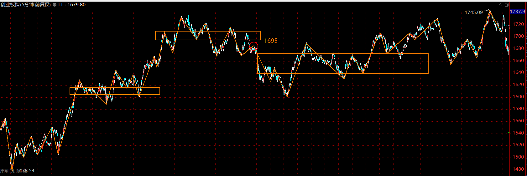 創(chuàng)業(yè)板這里則樂觀的多了,前高附近的中樞震蕩形態(tài),按歐奈爾的習(xí)慣來(lái)說(shuō),這個(gè)構(gòu)型叫“杯柄”,一種強(qiáng)勢(shì)形態(tài)??申P(guān)注1600-1640的支撐區(qū)域,適當(dāng)回補(bǔ)倉(cāng)位。從兩個(gè)市場(chǎng)的比較來(lái)看,依舊傾向于后續(xù)大行情集中在創(chuàng)業(yè)板,有點(diǎn)類似2013年,創(chuàng)業(yè)板多頭走勢(shì),主板還在探底。