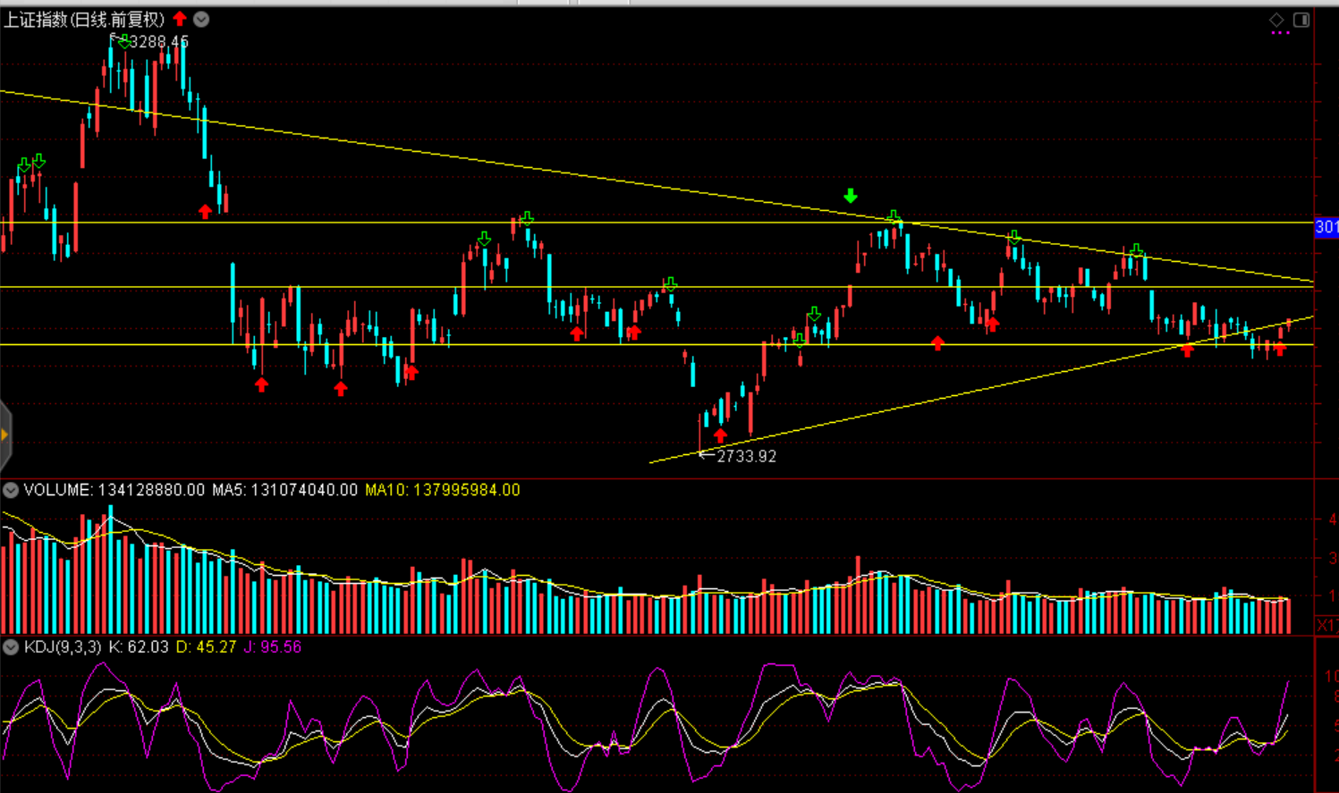 技術(shù)面:短期處于小周期反彈中,滬綜指2950點(diǎn)一線、創(chuàng)業(yè)板1750點(diǎn)一線存在反彈壓力。