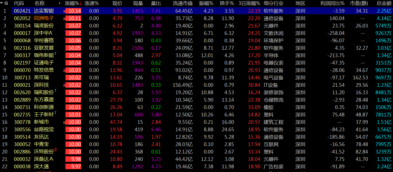 前日大面積普漲后,深圳本地股昨日總體表現(xiàn)強勢,板塊內(nèi)31只股票漲停,在漲停股中占據(jù)一半數(shù)量。