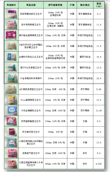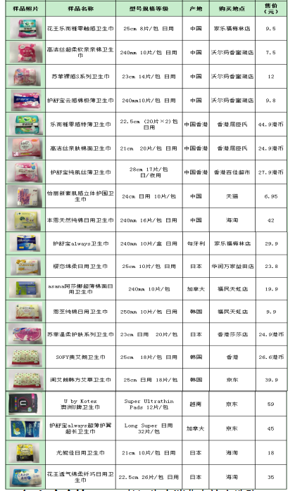 2018年衛(wèi)生巾產(chǎn)品比較試驗報告