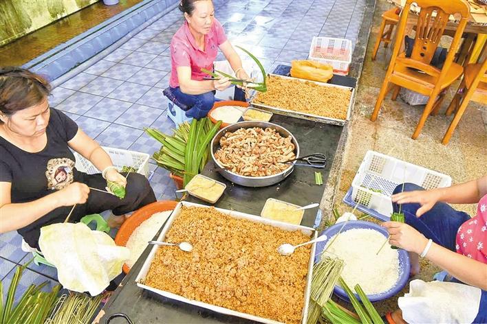 平時,玲姐是一位家庭主婦,每年端午節(jié)前她就變身為“包粽高手”。2017年,張長妹的酒家創(chuàng)下了銷售海膽粽4萬多條的紀(jì)錄,最高峰的一天足足包了4000多條海膽粽,玲姐一個人就包了1000條,也創(chuàng)下了個人紀(jì)錄?!皬脑缟?點(diǎn)包到晚上差不多12點(diǎn),最后腰都快直不起來了?!绷峤阏f,從六七歲就開始看著家里的大人包海膽粽,南澳人包粽技巧都是靠耳濡目染,“小時候,家里老人不讓我們包糯米,只能用沙子來練習(xí)?!?/p>