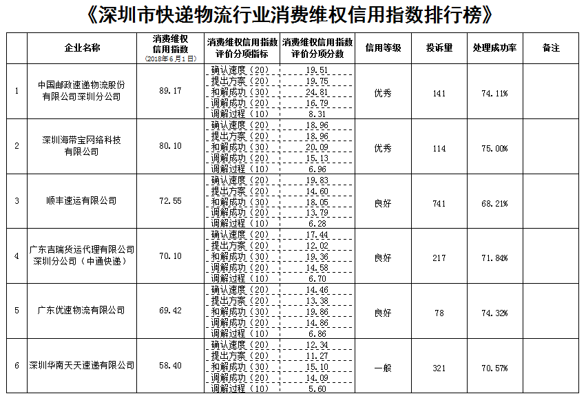 附:《深圳市快遞物流行業(yè)消費(fèi)維權(quán)信用指數(shù)排行榜》