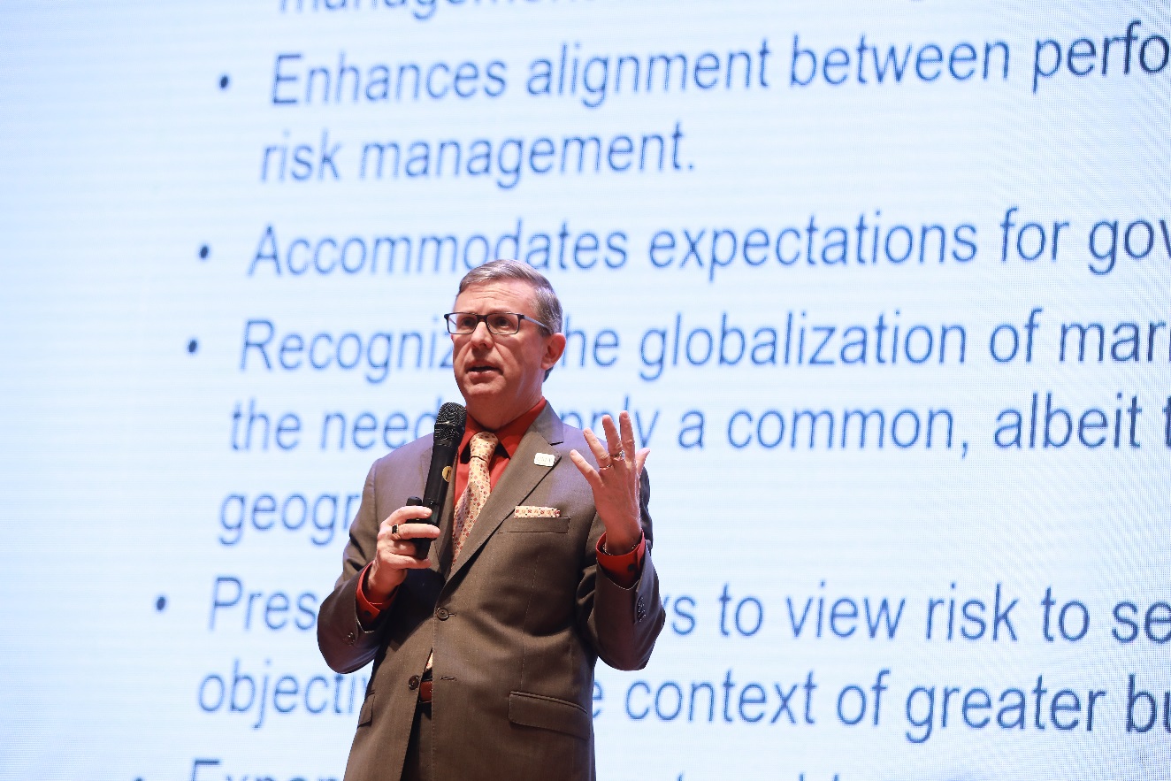 IMA總裁兼首席執(zhí)行官 Jeffrey Thomson以“企業(yè)風險管理——風險與戰(zhàn)略和績效協(xié)調一致”為主題,圍繞美國反虛假財務報告委員會下屬的發(fā)起人委員會C OSO的企業(yè)風險管理最新框架,與現(xiàn)場嘉賓分享了企業(yè)風險管理所需要注意的問題。Thomson表示,風險管理并非單一孤立,而應當貫穿于戰(zhàn)略制定、績效考核、內部控制等企業(yè)管理的方方面面。他強調,風險管理并非是“杜絕”風險,而更重要的是確定風險偏好,管控風險的同時分析發(fā)現(xiàn)企業(yè)發(fā)展的機遇。