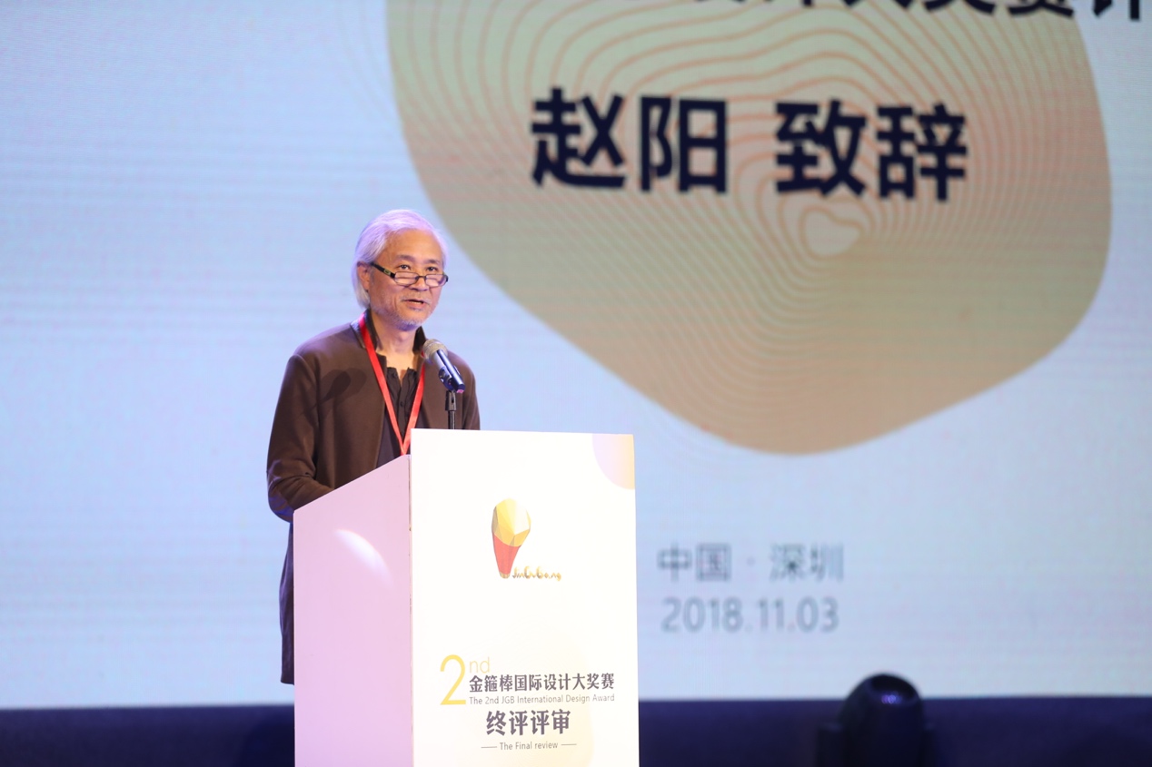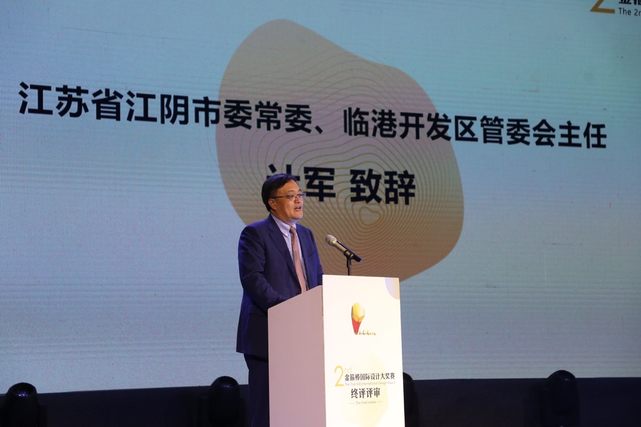 大賽主任評委、中國美術(shù)學(xué)院工業(yè)設(shè)計(jì)專業(yè)創(chuàng)始人及學(xué)科帶頭人趙陽教授也登臺致辭。趙陽教授回顧了與江陰、與金箍棒設(shè)計(jì)的淵源,高度贊揚(yáng)了本屆大賽倡導(dǎo)質(zhì)樸生活、注重設(shè)計(jì)落地的理念,并預(yù)祝比賽成功。