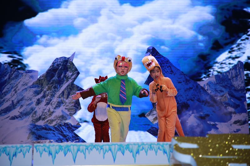 現(xiàn)場表演精彩紛呈,內(nèi)容積極向上,形式豐富多彩,表演生動逼真,充分展示出選手們奮發(fā)向上的精神風(fēng)貌,同時也展現(xiàn)了選手們的外語實際運用能力和自主創(chuàng)新精神?!度虬坠蔷贰ⅰ端廊恕?、《冰河世紀(jì)》、《獅子王》、《皇帝的新裝》、《白雪公主和七個小矮人》、《小紅帽》、《馬良的神筆》……一個個經(jīng)典的童話故事,惟妙惟肖的表演,生動的詮釋著故事里的每一個角色,把觀眾帶入一個個美麗的童話世界。
