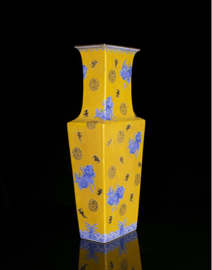 清·光緒黃釉藍料彩福壽紋方瓶成交價208000元