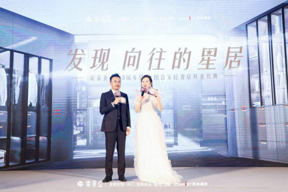 汪涵與索菲亞公司領(lǐng)導(dǎo)同臺慶祝索菲亞上市8周年及全國首家輕奢店開業(yè)儀式,將現(xiàn)場氣氛再次推向高潮。