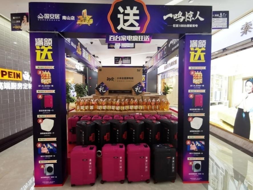 深圳新聞網(wǎng)2019年8月21日訊 最近,有消費者注意到南山國安居一周年店慶的獎品堆頭已經(jīng)陳列妥當(dāng),商場的忙碌情況也遠(yuǎn)超以往,據(jù)商場內(nèi)部工作人員透露,在一周歲之際,南山國安居將舉行一場力度空前的周年慶活動。