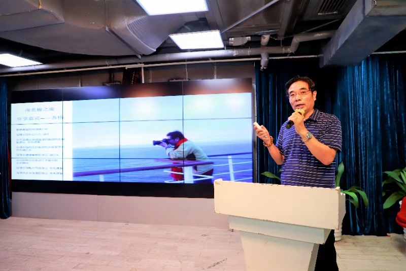 蘇偉老師在現(xiàn)場介紹:10月15日對深圳來說是一個極其不平凡的日子,上午在深圳舉辦了首屆“中國海洋第一展”暨“2019中國海洋經(jīng)濟博覽會”在深圳會展中心隆重開幕,下午由中國自主建造的首艘極地科學(xué)考察破冰船“雪龍2”號在蛇口港出發(fā)首航挺進南極,特別機緣巧合的是我今晚分享的內(nèi)容就是南北極旅游。為什么用“畫”極地,而不是“話”極地,這是因為,地球有三極,除了南北極外,還有“珠峰”就是第三極。而我們?nèi)齻€六十年的老男人,在蘇偉老師的鼓動下,三個人用不到三年的時間,踏訪了這“三極”。如果要展開講,恐怕三天三夜也講不完。所以,“畫”極地,就是用照片,講一下照片背后的故事。
