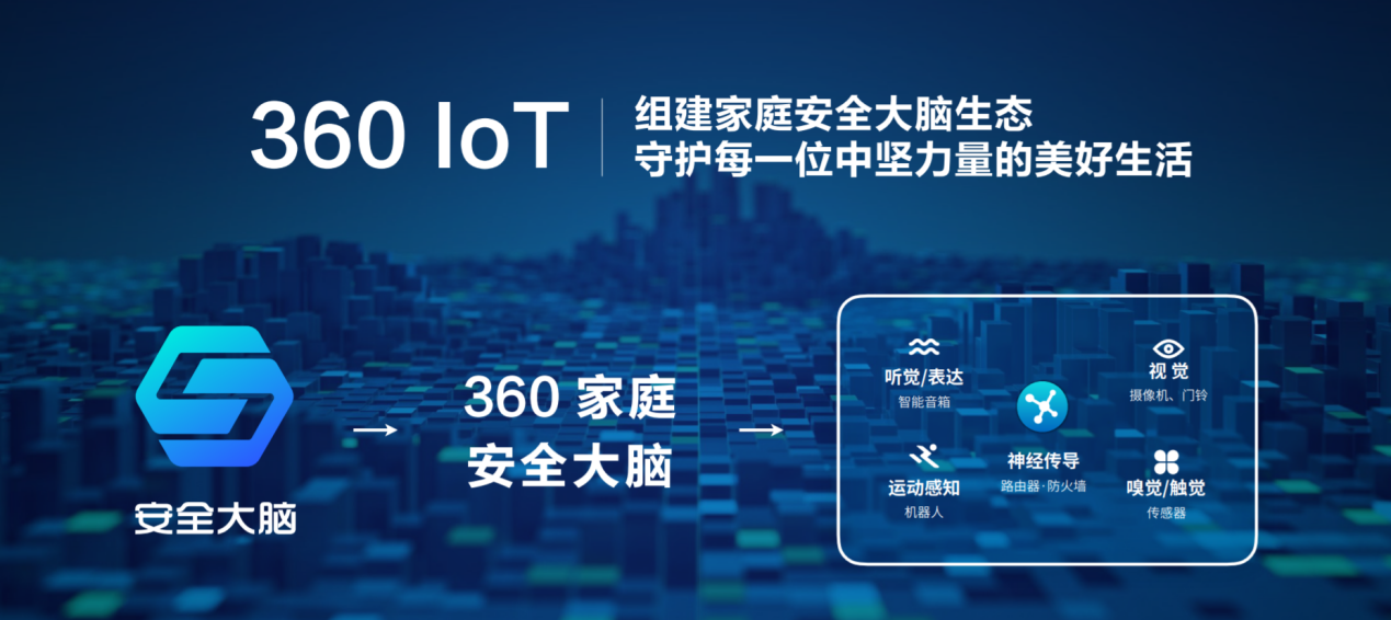 在今年3月舉行的 IoT春季發(fā)布會上,360集團董事長兼CEO周鴻祎對外預發(fā)布了360家庭安全大腦的概念。他希望為家庭日常場景打造一整套安防體系,這一體系以360家庭安全大腦為核心,由它協(xié)調調度家庭內部的防火墻、家用攝像頭、可視門鈴、AI音箱、掃地機器人、兒童手表等硬件產(chǎn)品,實現(xiàn)這些設備之間的互聯(lián)互通,協(xié)同聯(lián)動。用戶在家庭內部可以輕松享受這些智能硬件帶來的便捷,也可以在不在家的時候隨時隨地查看家庭內部的情況。對于那些日常工作繁忙,無暇照顧老人小孩的社會中堅力量來說,這套解決方案不僅能將他們從繁雜的家務勞動中解脫出來,更能有效消除他們日常的焦慮感,以更多的精力投身到工作之中。