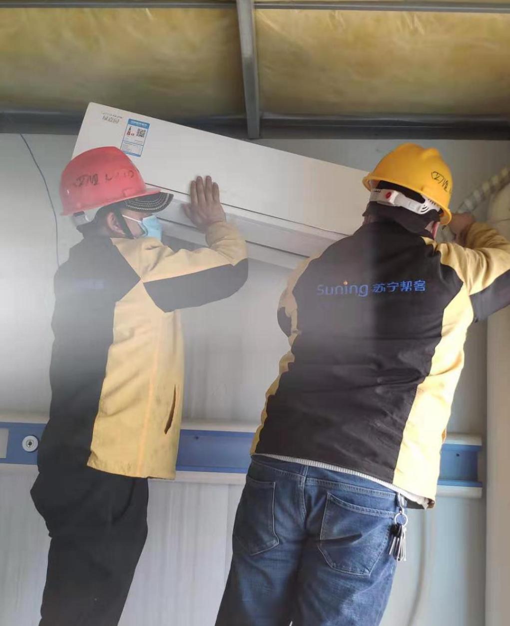 抵達雷神山建設(shè)現(xiàn)場是2月3日下午兩點,楊杰作為蘇寧幫客的工程師,與6名同事執(zhí)行免費為醫(yī)院病房安裝空調(diào)設(shè)備的任務(wù)。也正是這天,他把十歲的兒子送到了父母家,他隱隱感覺,這次任務(wù),“需要冒風(fēng)險”。