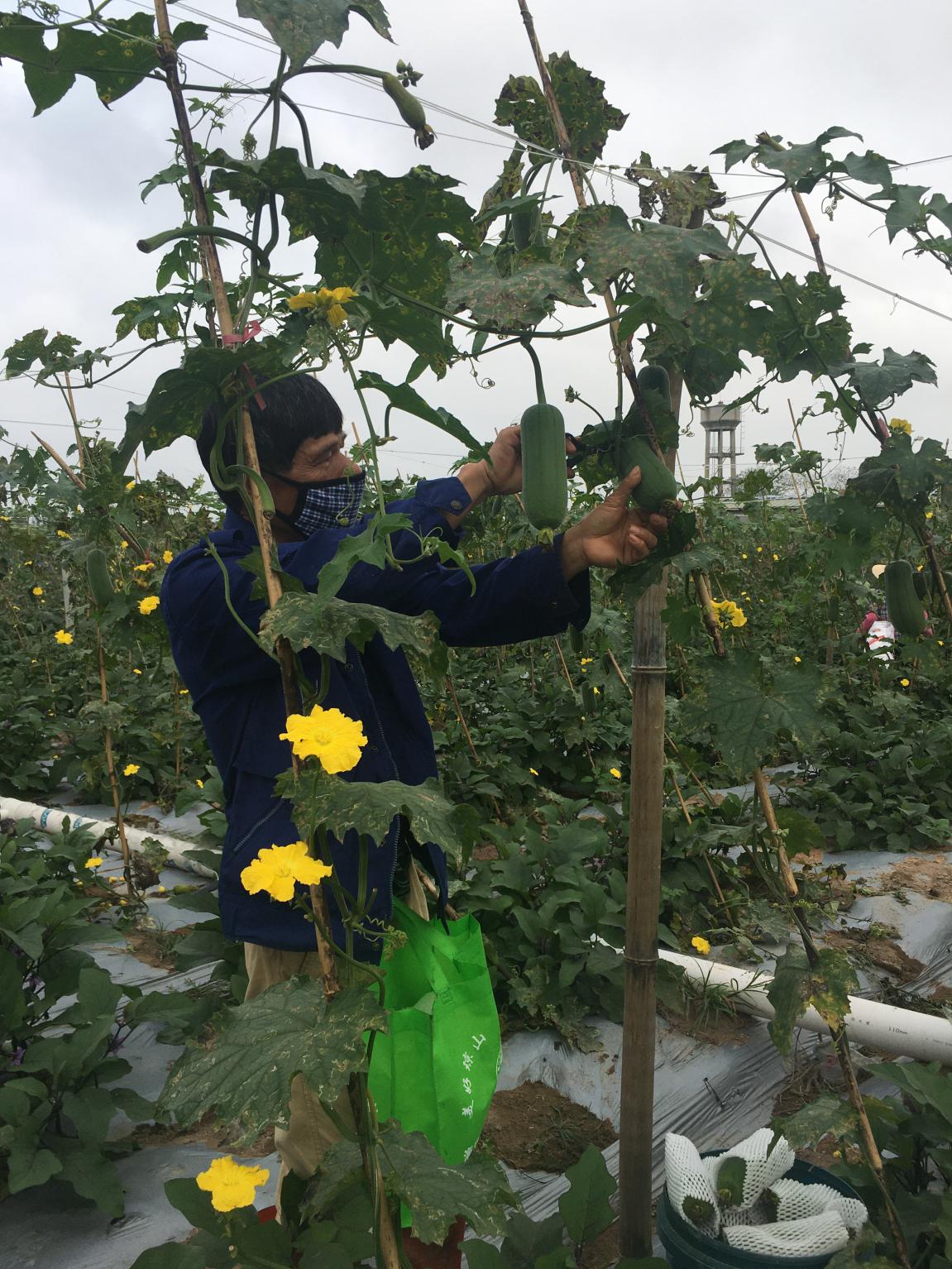 “前幾天,我們?nèi)ズ?诿捞m區(qū)大致坡萬眾農(nóng)合社采購了農(nóng)戶滯銷的絲瓜和圓茄,絲瓜每斤1.5元,圓茄每斤1元。在疫情沒來之前,圓茄采購價大概也要3.5 -4元每斤,絲瓜5 -6元每斤。這次進(jìn)貨價的降幅高達(dá)75%?!奔覙犯HA南區(qū)蔬果采購部長孟毅介紹到。