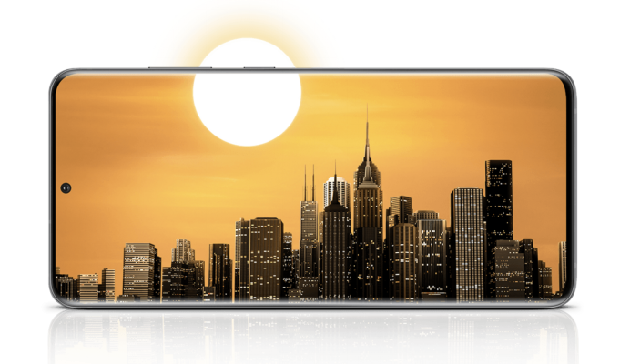 外觀方面,S20系列采用了Infinity-O全面屏設(shè)計(jì)。手機(jī)正面屏占比很高,上下邊框都做到極窄,視覺沖擊相當(dāng)震撼。相對(duì)而言,這種中間挖孔的設(shè)計(jì),在各種挖孔屏方案中顏值算是最高的。