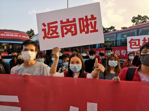 見圳客戶端·深圳新聞網(wǎng)2020年2月26日訊 2月25日下午,格蘭仕第二班“復工專機”在廣州白云國際機場平穩(wěn)降落,一百三十多名來自廣西各地的格蘭仕員工下了飛機第一件事,就是換上工作服,然后再搭乘企業(yè)安排的免費專車,回到了格蘭仕順德總部。據(jù)了解,2月21日,首趟“格蘭仕復工專機”已經(jīng)接回了一百三十多名生產(chǎn)技術(shù)人員。