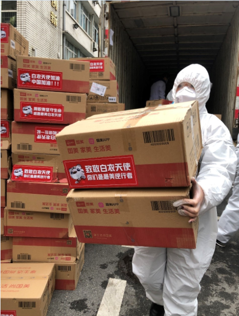 武昌醫(yī)院捐贈物資接收負(fù)責(zé)人在接受央視新聞記者現(xiàn)場采訪時表示,醫(yī)護人員穿上防護服會大量流汗,沒有胃口,方便食品可以改善食欲,而且更主要的是快,節(jié)約時間,幫助我們與時間賽跑,感謝國美等愛心企業(yè)的援助,他們默默無聞地提供了充足的物資和優(yōu)質(zhì)的服務(wù),幫助我們與新冠病毒抗擊,打贏這場戰(zhàn)役。
