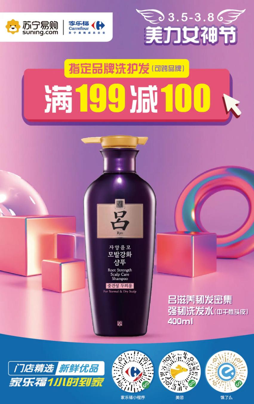 疫情期間,除了護膚,仙女們的一頭秀發(fā)也萬萬不能忽視!小本本記好了,家樂福指定品牌洗護發(fā)滿199立減100元。