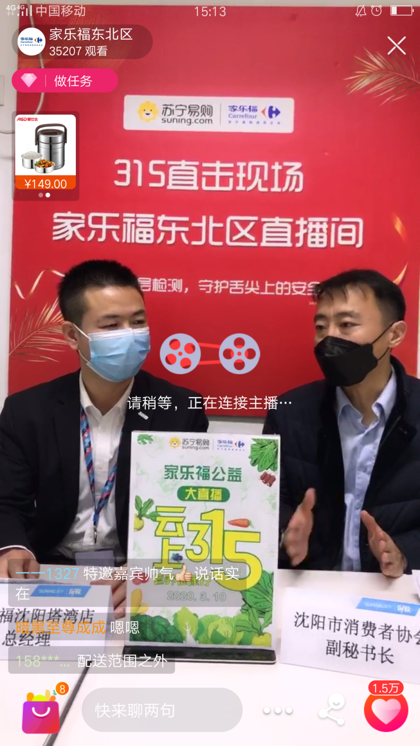 據(jù)悉,圍繞消費(fèi)者“關(guān)注舌尖安全”這一需求,家樂福啟動“家樂福公益大直播”,通過“互聯(lián)網(wǎng)+直播”的全新形式,讓食品流通全過程透明可見,直觀呈現(xiàn)在消費(fèi)者面前。3月10日,上午9點(diǎn)半至下午6點(diǎn)半,長沙賀龍店、北京四元橋店、沈陽塔灣店、珠海吉大店、上海古北店和成都大世界店六店接力云直播,推出“民以食為天,食以安為先”、“防疫保供網(wǎng)上行,健康營養(yǎng)很安心”、“層層檢測,守護(hù)舌尖上的安全”、“東北老鐵的檢測日?!薄ⅰ罢乙惨?,吃貨更要健康”及“川式面包,你確定不是辣的”等六大直播主題,助力消費(fèi)者“云上3.15,營養(yǎng)健康行”。