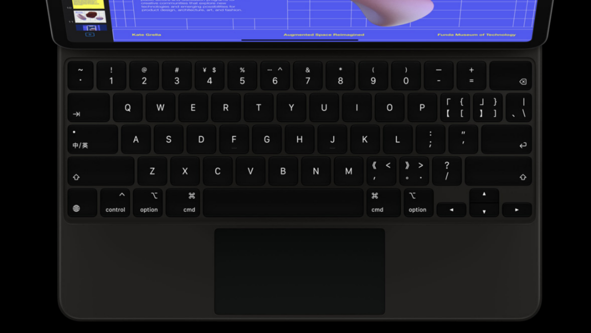在iPadOS13中,蘋果加入了針對(duì)鼠標(biāo)的支持,另外蘋果還專門為這款新iPad Pro設(shè)計(jì)專屬的Magic Keyboard鍵盤,不僅有全尺寸鍵盤,采用獨(dú)立的硬質(zhì)鍵帽及一毫米鍵程剪刀式結(jié)構(gòu),帶來(lái)靈敏、舒適又安靜的輸入體驗(yàn)。還設(shè)有點(diǎn)按效果全面一致的觸控板,搭配iPad OS也能得心應(yīng)手處理辦公內(nèi)容。