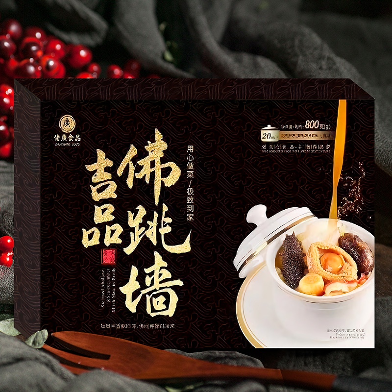 家樂福此番以“佛跳墻”打響頭炮。古人曰:“壇啟葷香飄四鄰,佛聞棄禪跳墻來”。佛跳墻作為滿漢全席的主菜之一,匯聚鮑魚、海參、魚肚、鮑螺、干貝、牛蹄筋、杏鮑菇、素翅等數(shù)十種珍貴食材煨于一蠱,吃起來軟嫩柔潤,湯汁濃郁鮮香。