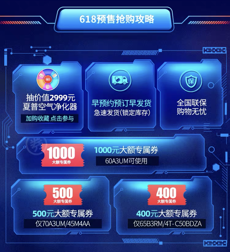 在本次天貓618預(yù)售活動(dòng)中,夏普精選代表性品質(zhì)機(jī)型,尺寸類型涵蓋45至70英寸不等,以滿足不同消費(fèi)者的體驗(yàn)需求,讓更多的消費(fèi)者全方位感受到夏普電視的非凡智能體驗(yàn)。